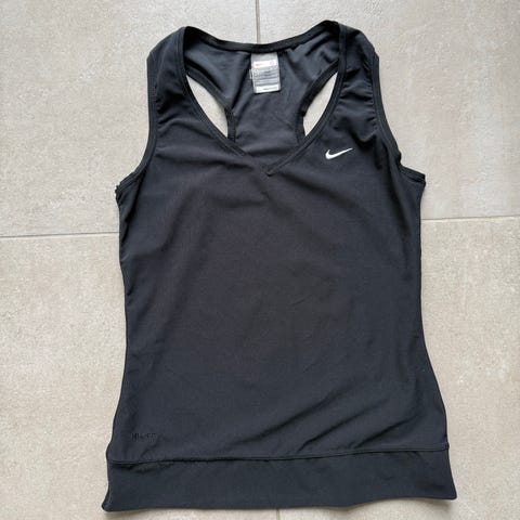 Nike Pro Fitness Top til damer i størrelse XS. Toppen er sort og lavet med Dri-FIT teknologi, der hjælper med fugttransport under træning. Fremstillet i Sri Lanka.