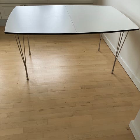 Lækkert mørkbejset spisebord fra Nordic Furniture. Der medfølger to ekstra plader så længden kan justeres, så det kan sidde op i op 8-10 personer ved bordet. Det kan hurtigt slibes og få jævn farve igen på alle plader. Nypris 18.000.
