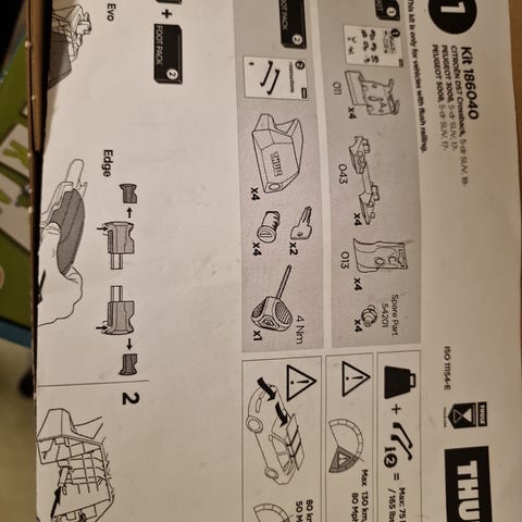 Thule kit og Fodsæt sælges, brugt på Peugeot 5008 med fastgørelsespunkter. Passer til flere ældre Peugeot og Citroën-modeller, se billede med vejledning.