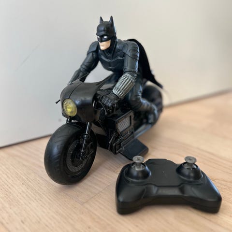 Batman fjernstyret motorcykel legetøj med fjernbetjening. Legetøjet forestiller Batman på en motorcykel og er designet til børn.