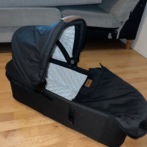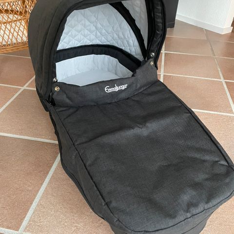 Original Emmaljunga liftmadras (aldrig brugt) medfølger. Desuden medfølger vejledning samt en brugt Babydan madras.