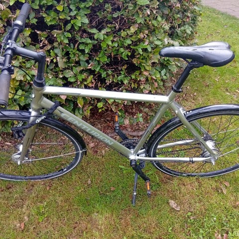Denne cykel fungerer fint, skal dog have ny slange på bagdækket. Har stået i min kælder længe jeg har købt en bedre cykel.