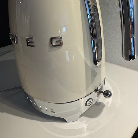SMEG elkedel i sort farve med rustfrit stål detaljer. Designet til opvarmning af vand til forskellige husholdningsformål.