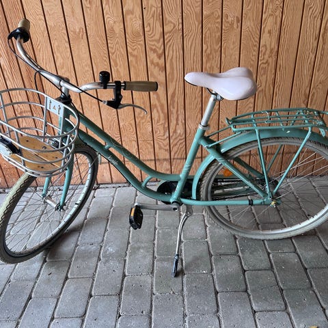 Norden pige/damecykel i sort farve med lav indstigning. Cyklen har en kurv foran og bagagebærer bagpå. Den er udstyret med kædeskærm og lås. Sadel og håndtag er i lys farve. Cyklen er velegnet til daglig transport og bykørsel. Er i pæn stand. Lidt rust på kurv og revne i sadel. Kvittering og servicebog medfølger.
