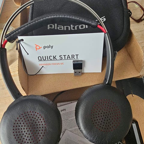 Selling a Poly Voyager 4320 UC wireless Bluetooth headset. This headset is designed for the professional user who needs crystal clear audio and noise cancellation during calls. Featuring Poly Acoustic Fence technology, background noise is effectively eliminated so your voice always comes through clearly. The headset boasts a long battery life of up to 24 hours of talk time and can be connected to both a computer and mobile device simultaneously via the included BT700 USB adapter. It is optimized for use with Microsoft Teams, Zoom, and other conferencing systems.