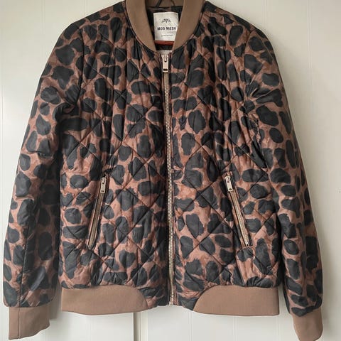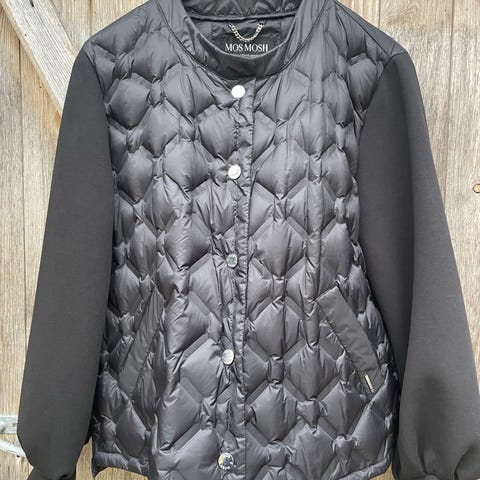 Mos Mosh Vera Camo jakke i størrelse L. Jakken er multifarvet og lavet af uld. Designet er i camouflage-mønster med guld knapper og lommer. Brugt i en kort periode.