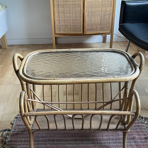 Det har lidt patina, men pladen er intakt og benene er fine.