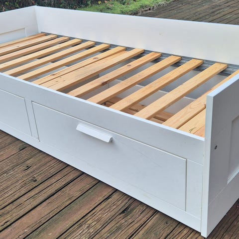 Vesteröy madras på 80x200 kan tilkøbes med, den har dog været brugt et par måneder. Men fejler absolut intet.