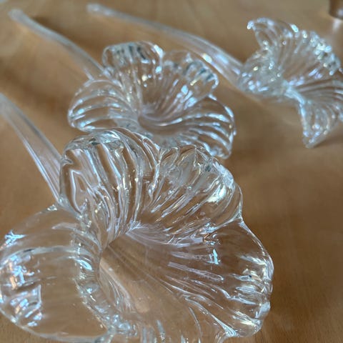 Glasblæst dekorationsblomst rød købt i Prag