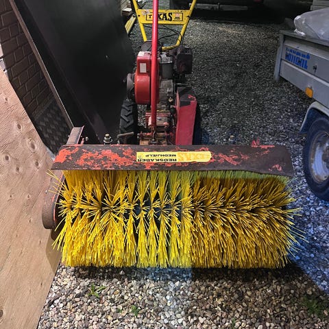 Vinteren er på vej, så det er nu, du skal købe en fejemaskine til snerydningen. Maskinen har sidst været i brug for et par år siden, og nu har den ikke rigtig lyst til at starte (men jeg er ikke mekaniker). Koblingsgreb er knækket og skal skiftes, men det koster kun 105 kr. hos Texas. Ellers fungerer den fint