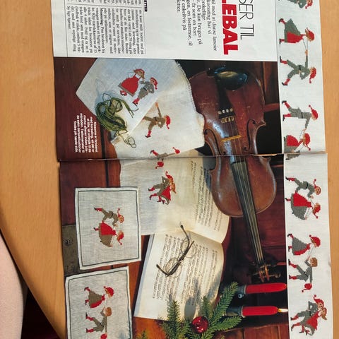 1 færdiglavet sjal, beige. 1 julekort som man selv skal brodere, og 3 dukker garn, samt 2 broderier I smedejernsstager. Sælges samlet. Sendes ikke. Prisen er fast. Sælges enkeltvis for 400 kr, julekort som broderier med broderigarn sælges for 90 kr eller samlet for