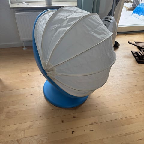IKEA børnestol med tilbehør bestående af stol og ekstra dele til børn. Designet til at give komfort og støtte under måltider.