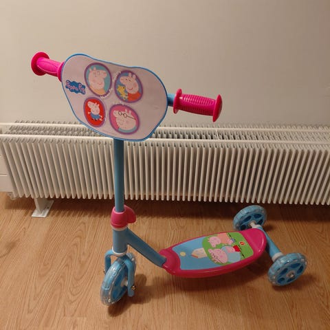 Gurli Gris løbehjul til de små børn brugt men god istand køre fine og løbehjulet er 3 hjulet og kan bruges fra 2-6 år har sat prisen efter tilstand på løbehjulet og jeg sælge det til 100kr