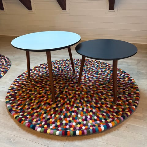 Flot sofabord fra VIA Copenhagen. Hvid/sort bordplade med egetræben.
