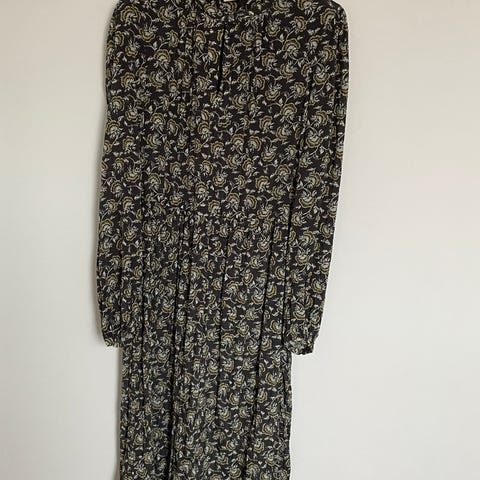 Kjolen har lange ærmer, rund halsudskæring med "nøglehulsåbning" som har en enkel knaplukning. Helt enkel i modellen. Kvaliteten er absolut i top som består af en fin, krøllet silke.