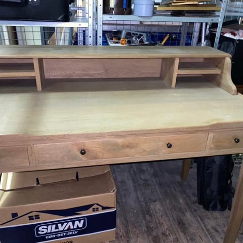 skrivebord fra ilva med 2 skuffer i hvidpigmenteret lakeret egefinér. Bordet er i super stand med minimale brugsspor. Skufferne fejler heller ikke noget.