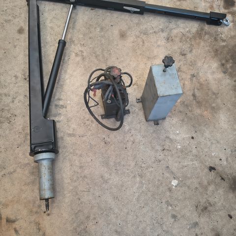 Kompakt hiab kran 400kg løfte evne. 130cm høj 160cm udlægger. 12v hydraulik station. 24v defekt medfører. Nyt bære leje. Istandsat og malet for nyligt.