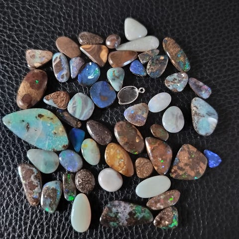 Vægt 2,10 carat. Mål ca. 8 × 8 × 6 mm. Naturlig, ubehandlet opal med mindre ujævnheder og lidt modersten.