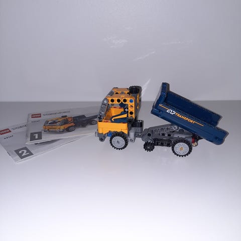 LEGO Technic 42203 Lastbil model i blå farve. Sættet består af detaljerede dele, der kan samles til en lastbil med funktionelle elementer. Velegnet til samling og leg.
