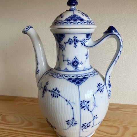 Royal Copenhagen kaffekande med blå blomsterdekor