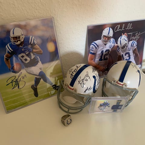 Blandet merchandise fra baltimore ravens. 4 Nøgleringe, 6 flaske kølere, 2 flag, 2 halskæder, 4 armbånd, 1 klistermærke, 2 halsedisser og 2 mini flag.