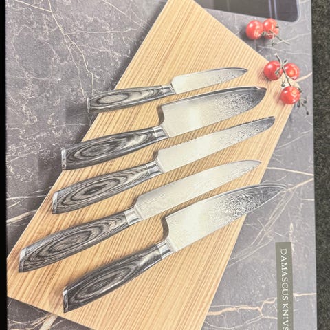 Damascus køkkenknive sælges, aldrig været brugt. Sælges udelukkende da stilen ikke helt er som jeg ønsker.
