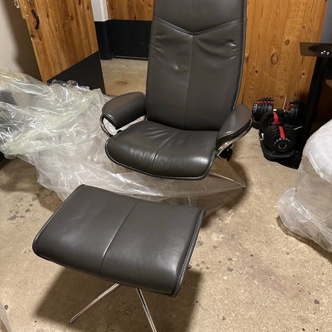 Stressless Metro Lænestol og fodskammel i sort læder.
