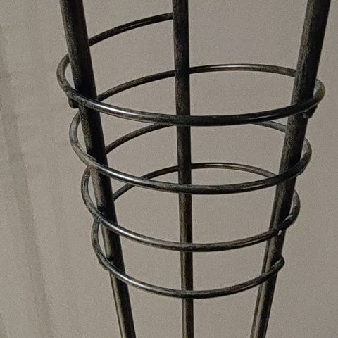 Rigtig flot trebenede Gulvlampe, justerbar højde på benene. Lampen kan tændes og slukkes via knap på gulvet.