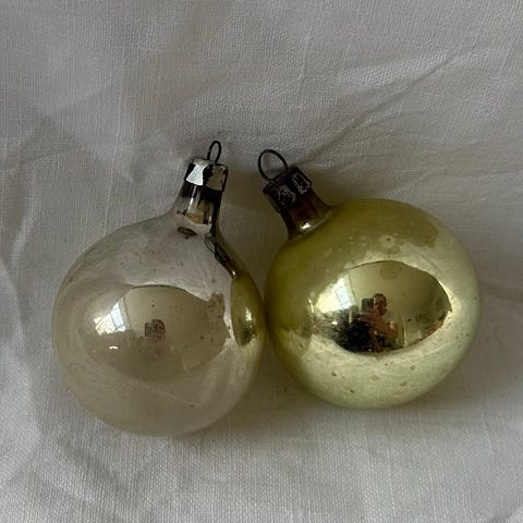 Gammel fransk glas julekugle med den smukkeste perlemorsfinish. Så smuk!!