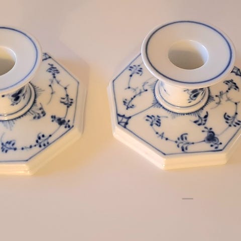Flotte musselmalet lysestager fra Royal Copenhagen.