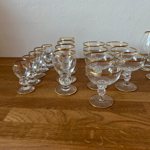 Glas med intakt guldkant i virkelig god stand sælges samlet.