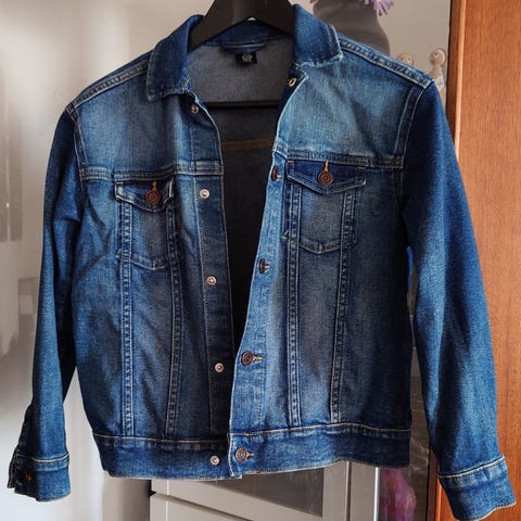 Lyserød denimjakke str. 134.