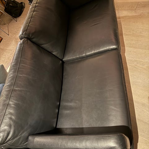 Lædersofa inklusivt mindre rundt bord kan afhentes gratis.