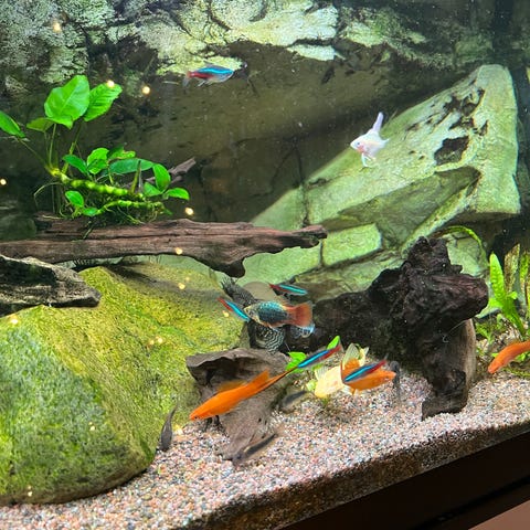 Der er 5 regnbue fisk, 2 flyvende ræv, ukendt antal (både fuldvoksne og yngel) sværddragere, lyrehale mollyer, ballon mollyer og violinsmerlinger.