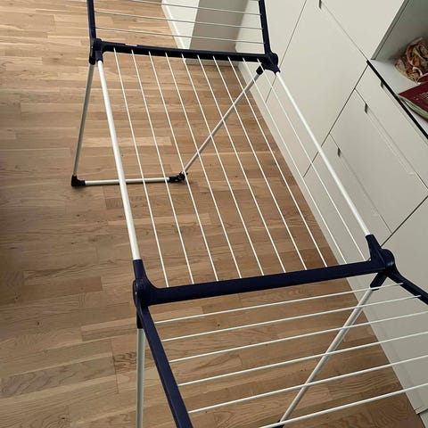 The Vileda King drying rack with wings has a very safe and stable design made of aluminum and steel. With a maximum drying capacity of 20 meters and extra thick drying lines to avoid streaks on the laundry. No storage or use in sub-zero temperatures. No use of corrosive or abrasive cleaning agents to clean the rack. Do not use the rack for storage.