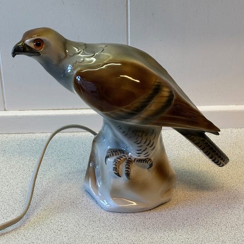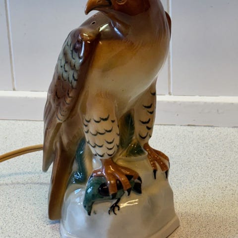 Pæn og velholdt. Lige bortset fra et lille bitte skår i den ene vinge (se blå cirkel)