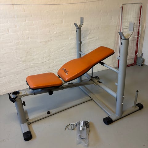 Benræningstilbehør, vægstang, samt 3 låse til vægtskiver medfølger.