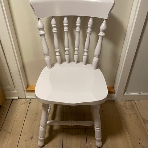 Yodders på sædet måler den 41 cm i bredde og ned enden ved ryglænet måler den 34 cm i bredde. God stol.