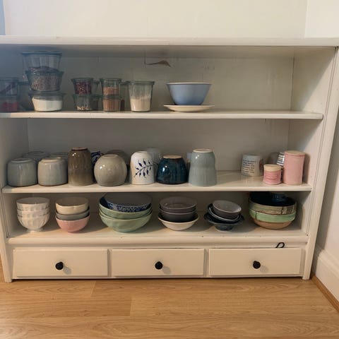 Det er de originale glasskuffer, der er en som mangler et lille hjørne (se billede), men ikke noget man ligger mærke til syntes jeg.