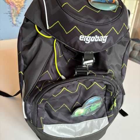 Skoletaske med justerbar bæresele, kan tilpasses højde fra 100-150 cm. Inkl. gymnastik taske og penalhus.