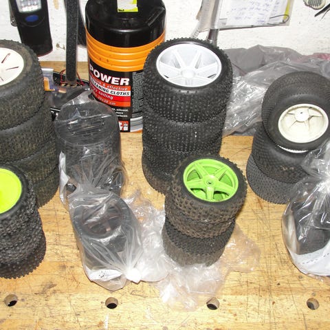 Dæk der ikke er kørt færdig, der er 5 ens sæt + div .(Gls mulig) Resten : 3 x 1 slags og 3 x 1 slags og 2 x slags og 2 x 1 slags. De er til større biler og billige nu !!.