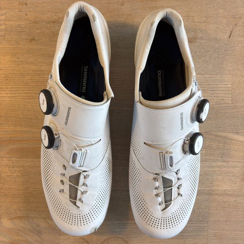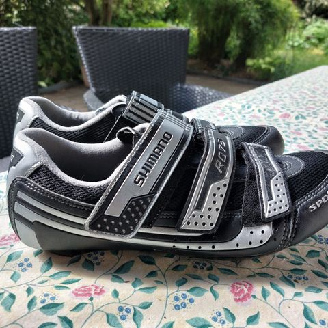 Jeg sælger et par Shimano R099 sko, de er ikke blevet brugt og står derfor som nye, se foto.