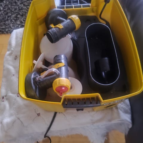 Wagner sprøjteudstyr inklusive tilsluttede slanger. Udstyret er velegnet til malerarbejde og overfladebehandling. Slangerne er fleksible og designet til brug med Wagner sprøjtemaskiner.