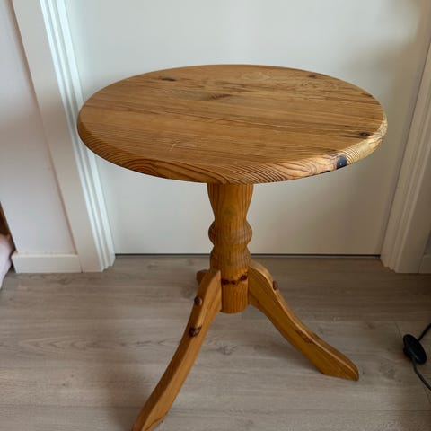 To fine runde træ-sideborde – Ø50 cm, højde 45 cm (det ene er solgt