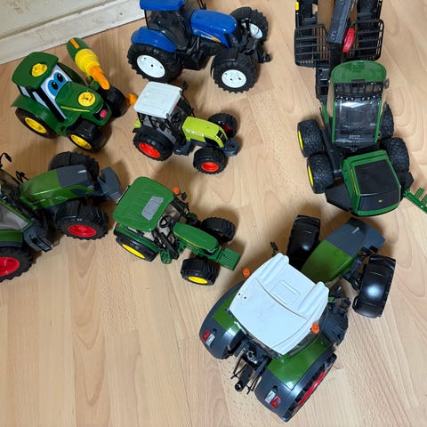Diverse traktorer og redskaber sælges. De bærer præg af at have været leget meget med deraf prisen, de fungere dog stadig trods fejl og mangler.
