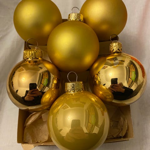 8 stk. vintage glaskugler, guld, gylden, lyseblå