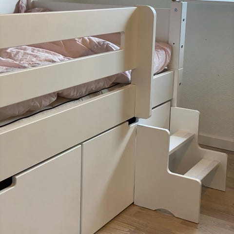 Manis-h juniorseng 90*200cm med sengehest sælges. Købt fra ny, fire år gammel, original kvittering haves.