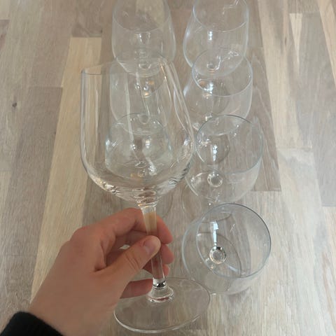 Flotte ornamenterede vinglas som er købt fra IKEA, men er en udgået model. De er helt som nye og der er 8 stk. Sælger dem, da jeg simpelthen har for mange vinglas.