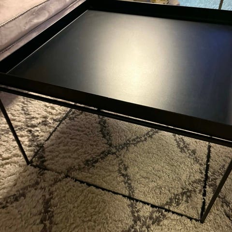 Rigtig fint sofabord fra Hay med sort linoleums plade og alu stel. Det har en lille skade i hjørnet med ikke noget man lige ser.