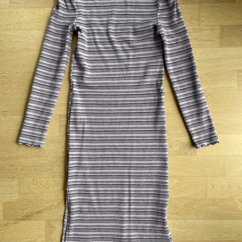 Hedder str 134/140 men jeg synes den er lille i str og min datter har brugt den svt 122/128.